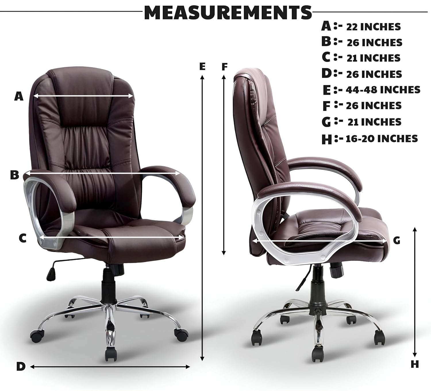 Executive Upholstery: Features Premium Brown Leatherette (Faux Leather) for a rich, sophisticated look that is durable and easy to clean. (Keywords: Brown Leatherette, Executive Office Chair, Premium Faux Leather)