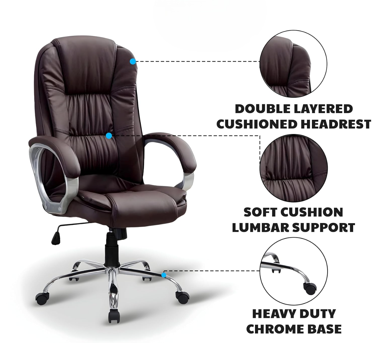 Heavy-Duty Stability: Supported by a robust and Heavy Duty Chrome Base engineered for maximum stability, safety, and long-term use. (Keywords: Heavy Duty Chrome Base, Durable Office Chair, Strong Base)