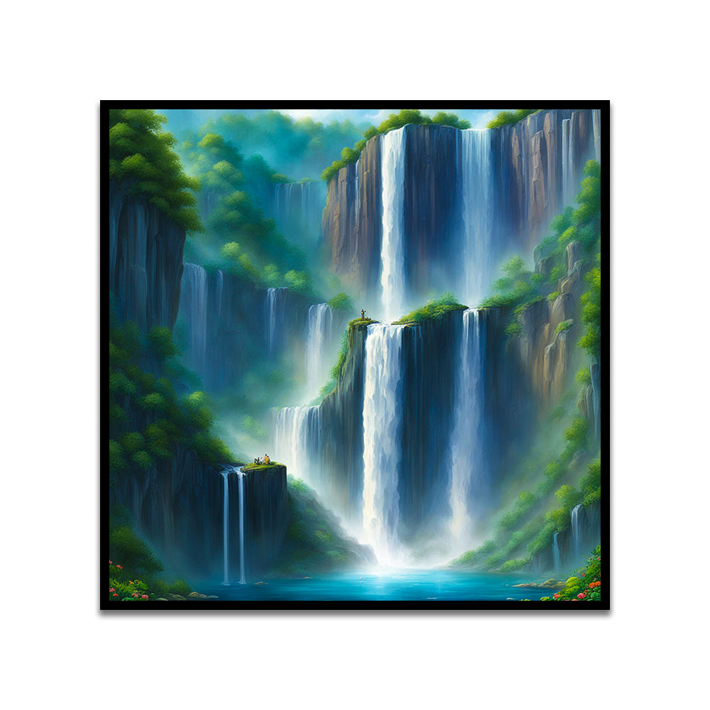 • Multi-Layered Waterfall Nature Canvas Wall Painting
