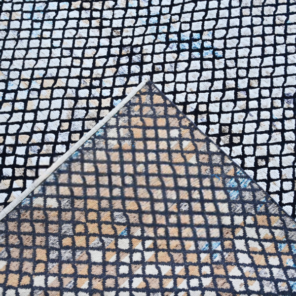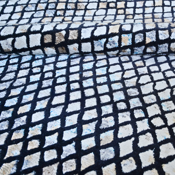 Nivalis is a striking fusion of elegance and bold geometry, designed to bring contemporary character and timeless allure to any interior. Hand-knotted with 80 Indo-Tibetan knots per square inch, this rug features a delicate interplay of 60% wool and 25% bamboo silk on a 15% cotton warp foundation. Its diamond lattice pattern dances across a soft misty backdrop with hints of earthy hues, echoing a serene sky laced with clouds. The texture is plush yet refined — ideal for modern lounges, serene bedrooms, or statement hallways that seek artistic sophistication.