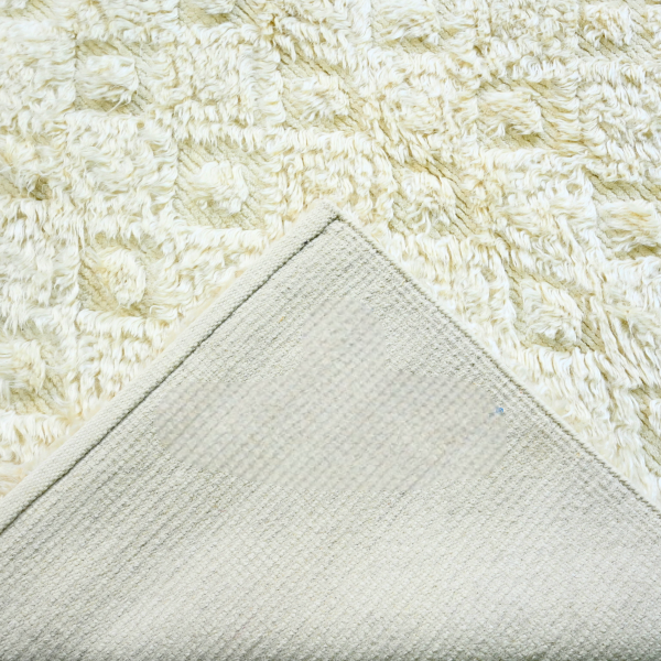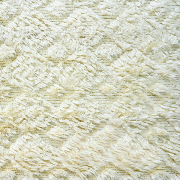 Nura redefines plush elegance with its cloud-like texture and warm neutral tones. Hand-knotted with exquisite care, this Moroccan-style rug uses a high-low weaving technique that delivers both visual interest and a rich, tactile feel. The upper layer is crafted from luxuriously soft Mohair wool, while the lower pile is made of premium New Zealand wool — together forming 80% of the rug’s surface. The base warp, made from strong cotton (20%), adds structure and durability.