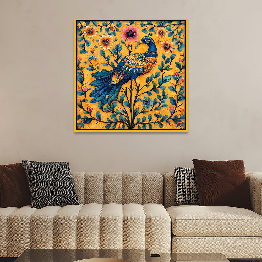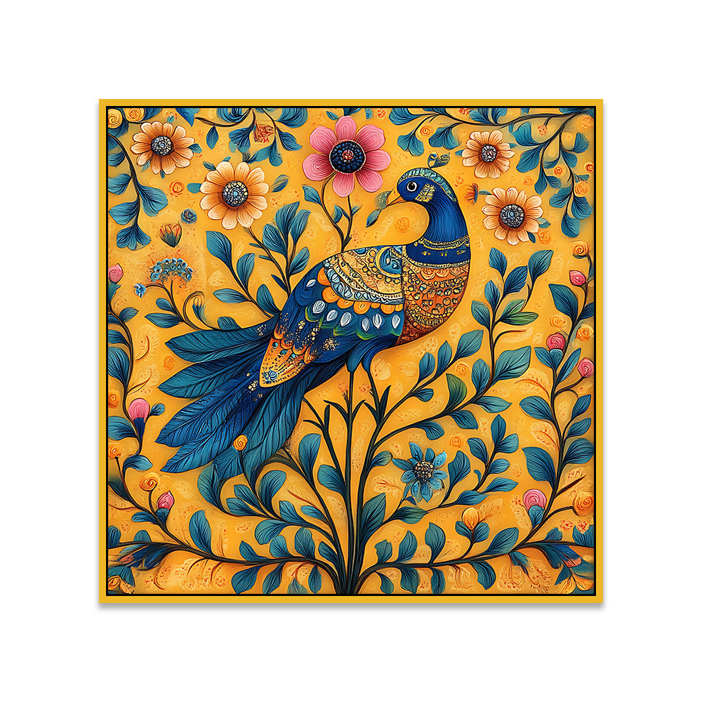 • Peacock Modern Art Multicolor Square Canvas Wall Painting