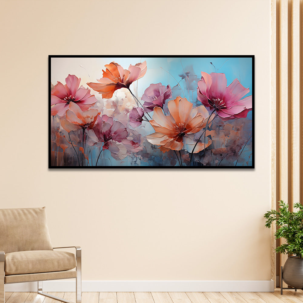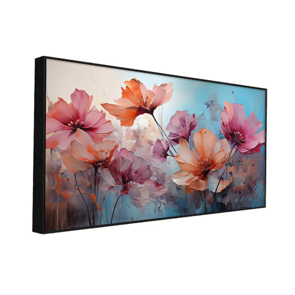 • Pink Blooming Floral Canvas Painting for Wall Decoration