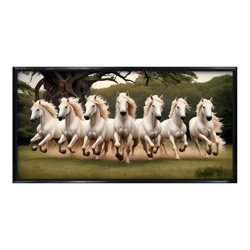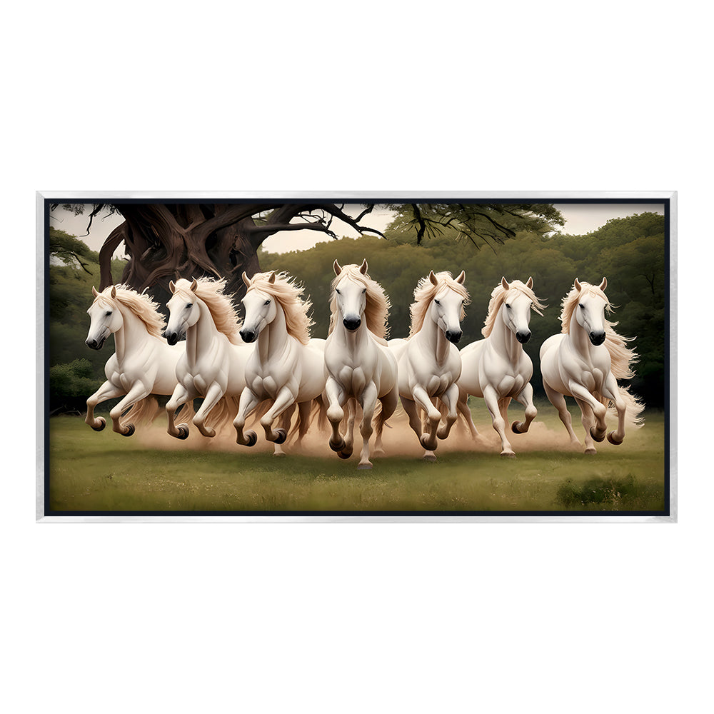Premium 7 Running Horses Vastu Canvas Painting for Living Room