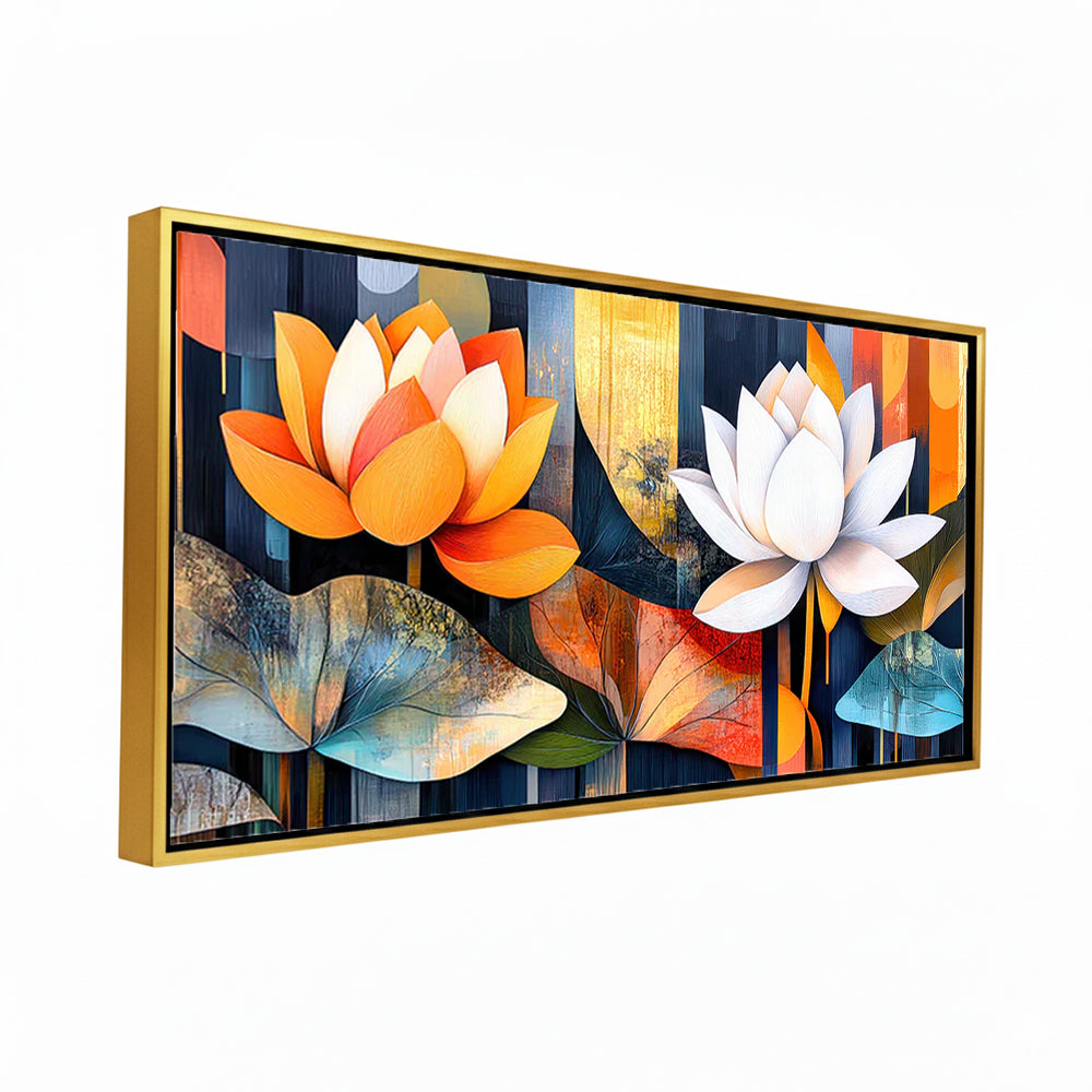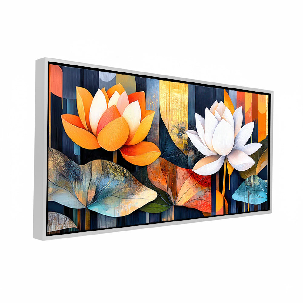 Premium Abstract Lotus Flower Canvas Art | Modern Orange and White Floral Painting