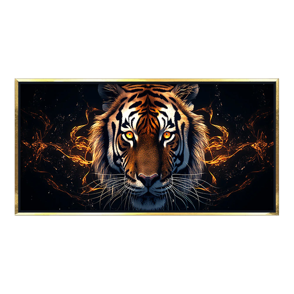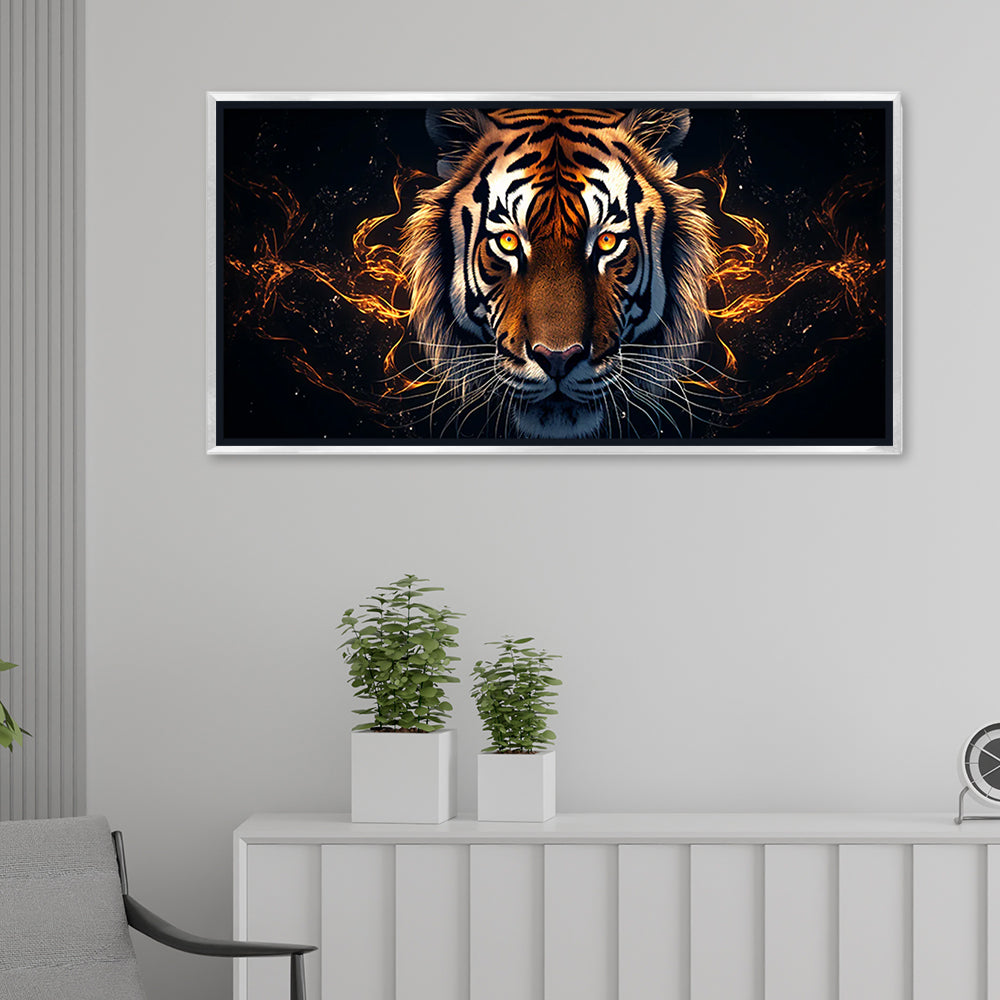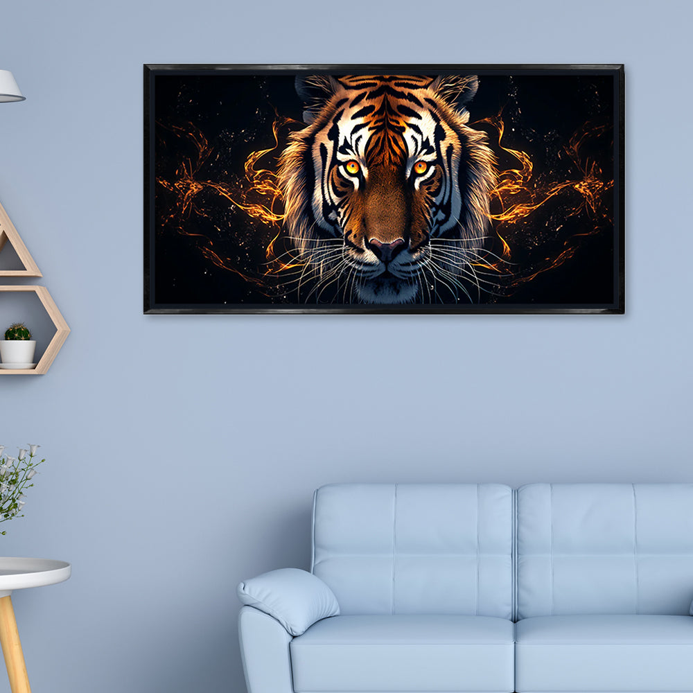 Premium Fierce Tiger Head Canvas Wall Art | Dramatic Dark Animal Portrait