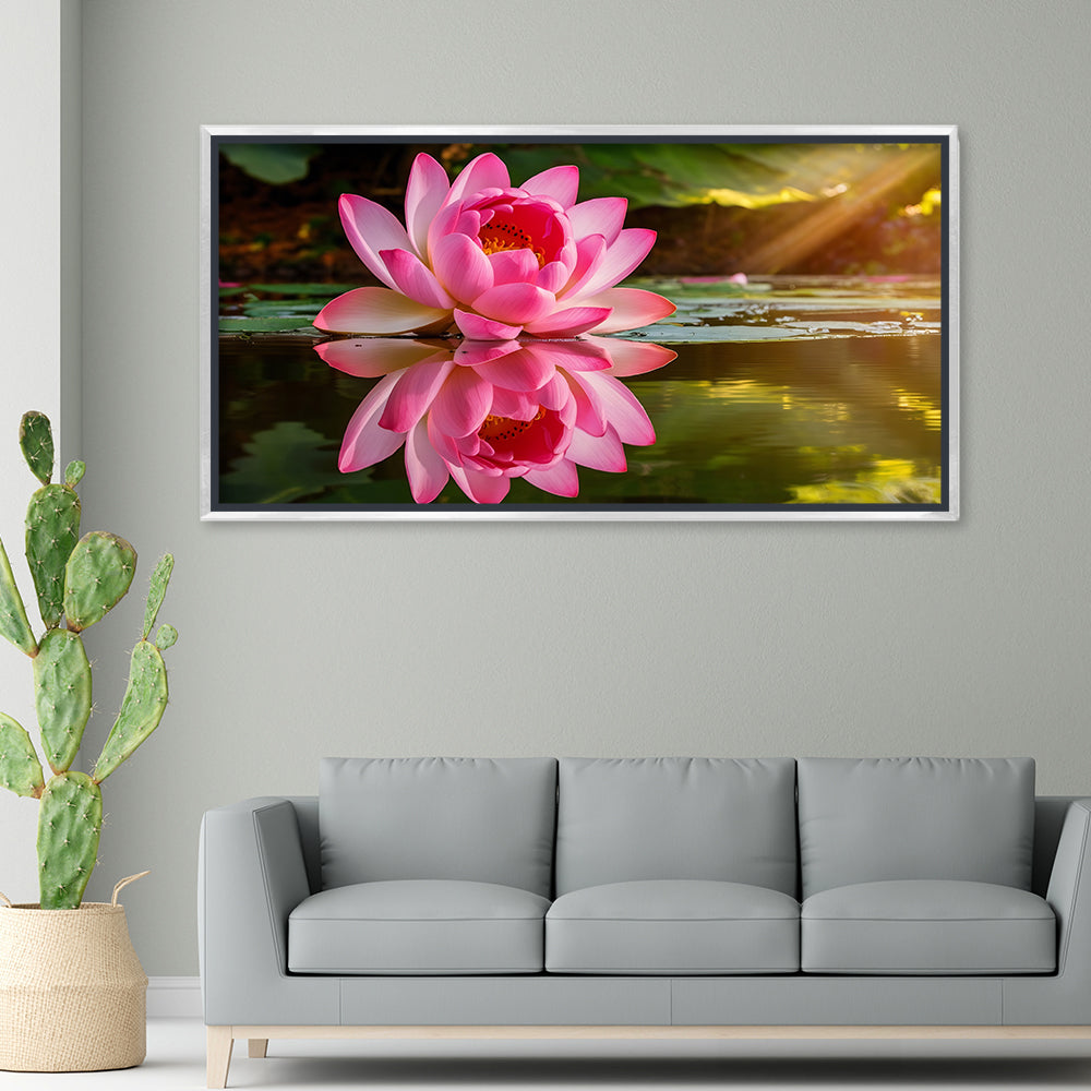 • Premium Large Calming Lotus Pond Painting | Modern Floral Nature Canvas for Living Room