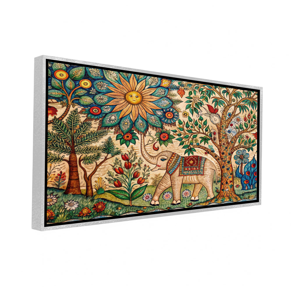 Premium Mithila Art Elephant & Tree of Life Painting | Traditional Madhubani Style Canvas Print for Wall Decor