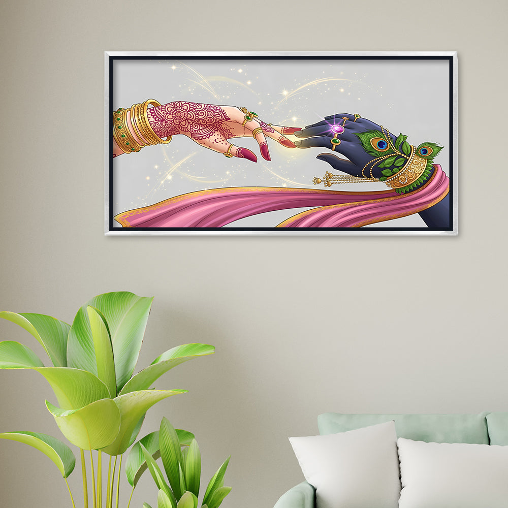 Premium Radha Krishna Hands Canvas Art | Divine Love Spiritual Wall Decor