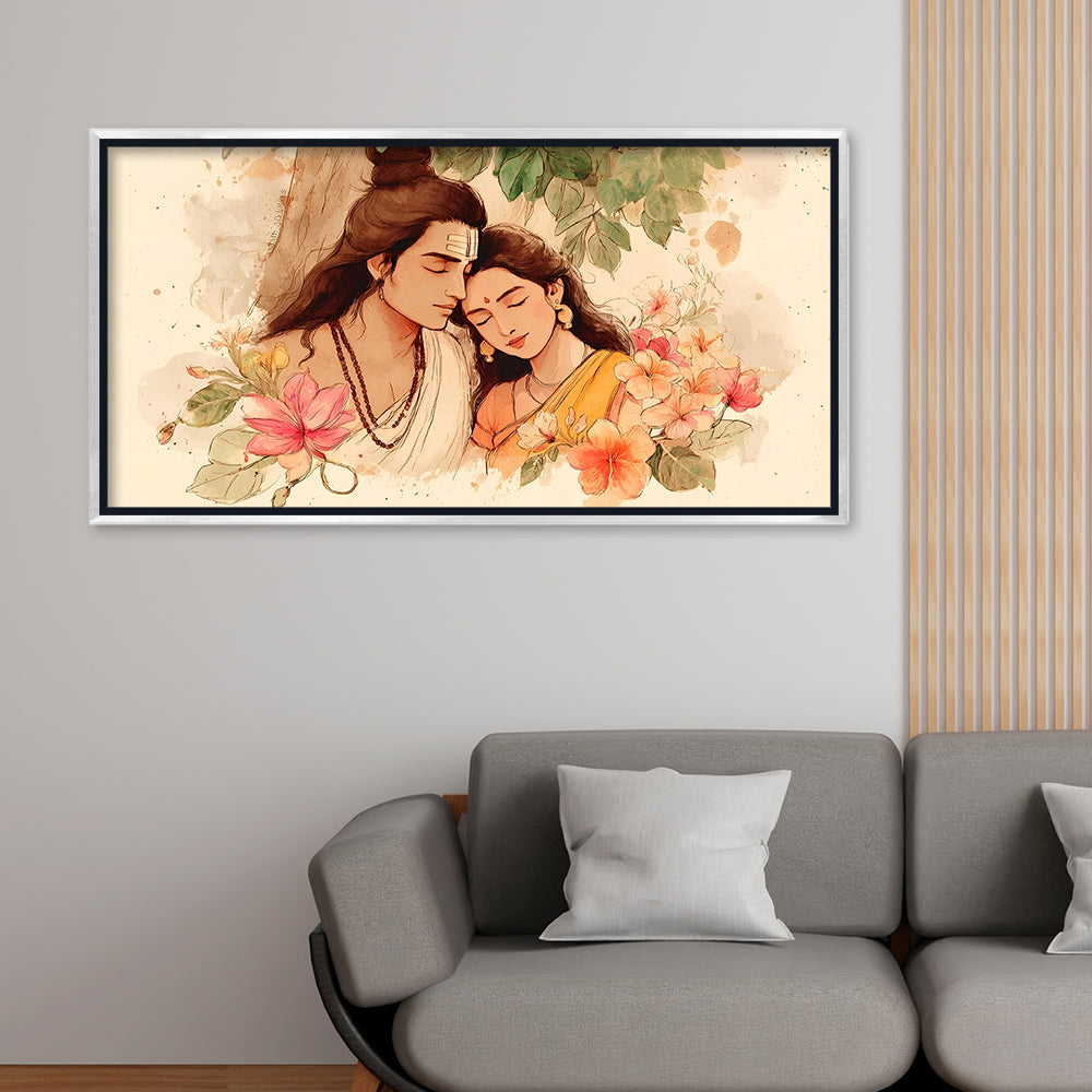 Premium Shiva Parvati Divine Couple Canvas Art | Spiritual Love Portrait Painting