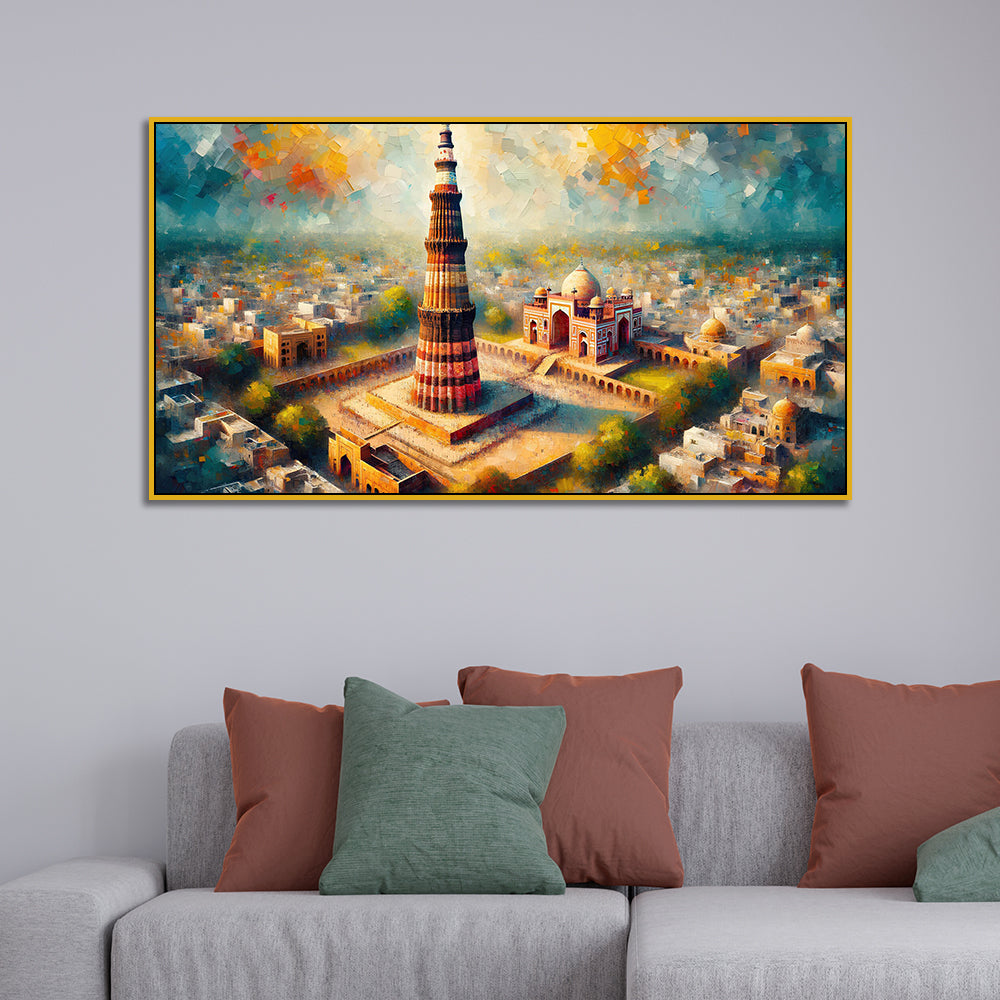 Qutub Minar: Delhi Landmark in Impressionist Style Canvas Print Wall Painting