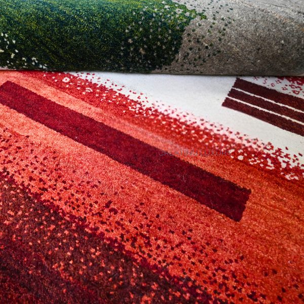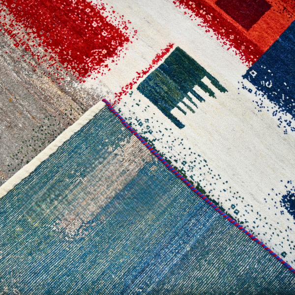 A bold celebration of color and craftsmanship, Rangmanch is an Indo-Tibetan Lori rug that fuses traditional Gabbeh motifs with modern abstract expression. Hand-knotted using 80% wool and 20% cotton, its vibrant palette of saffron, crimson, blue, and green evokes energy and cultural depth. Ideal for contemporary interiors that value storytelling through design.