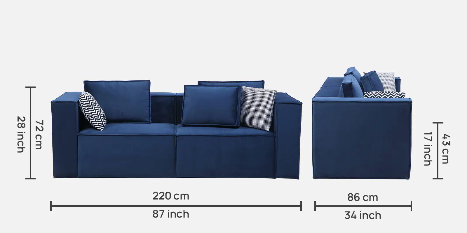 Royal Blue Velvet 3 Seater Sofa | Modern Modular Design