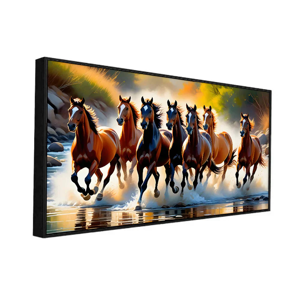 • Seven Running Horses on River Canvas Wall Décor Painting With Floating Framed Clearance Sale