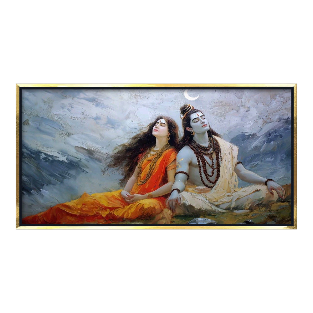 Shiv Parvati Meditation Canvas Art | Himalayan Mountain Traditional Hindu Painting Print