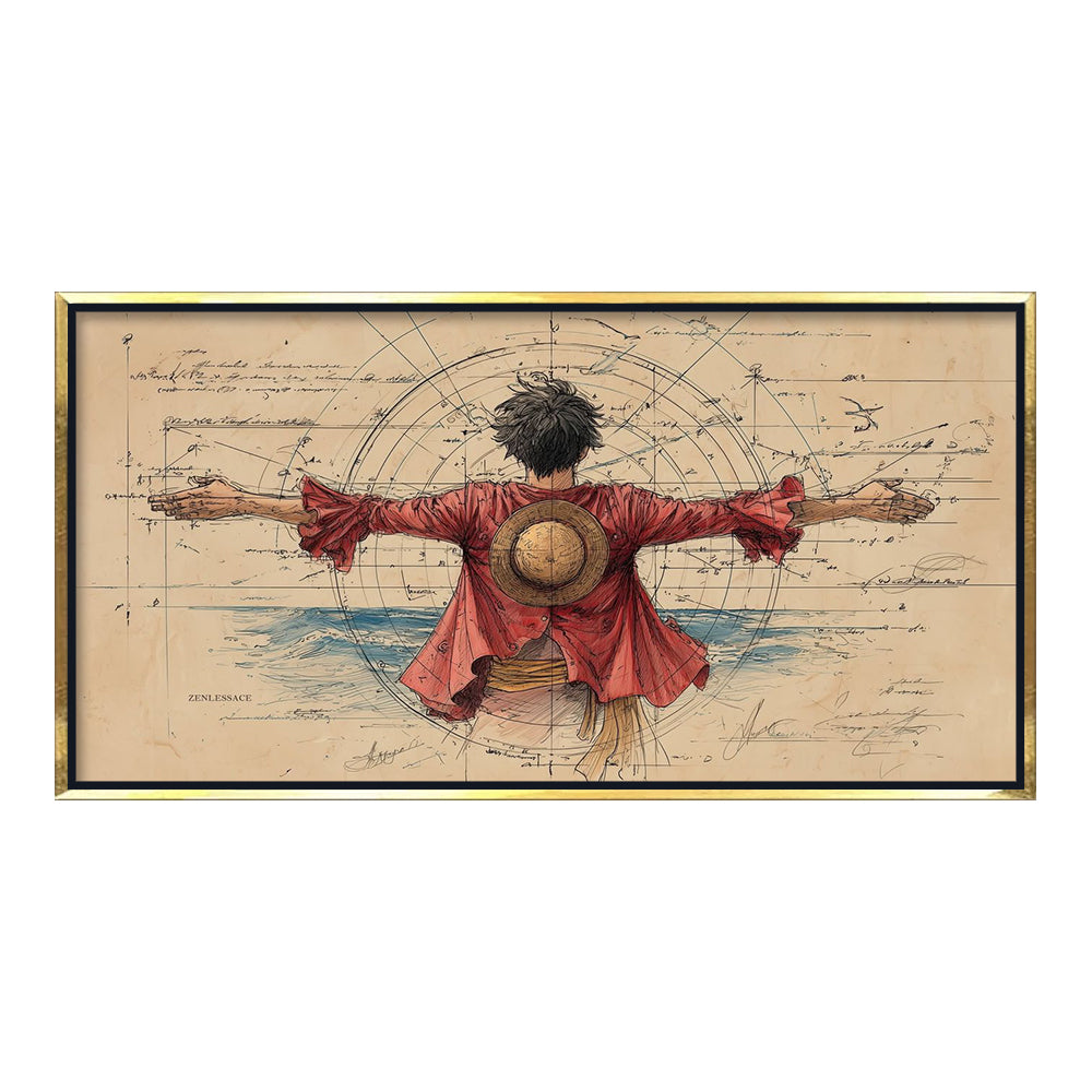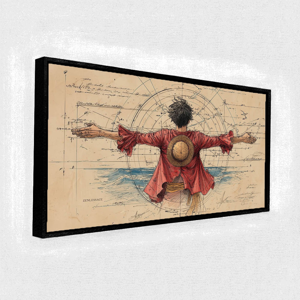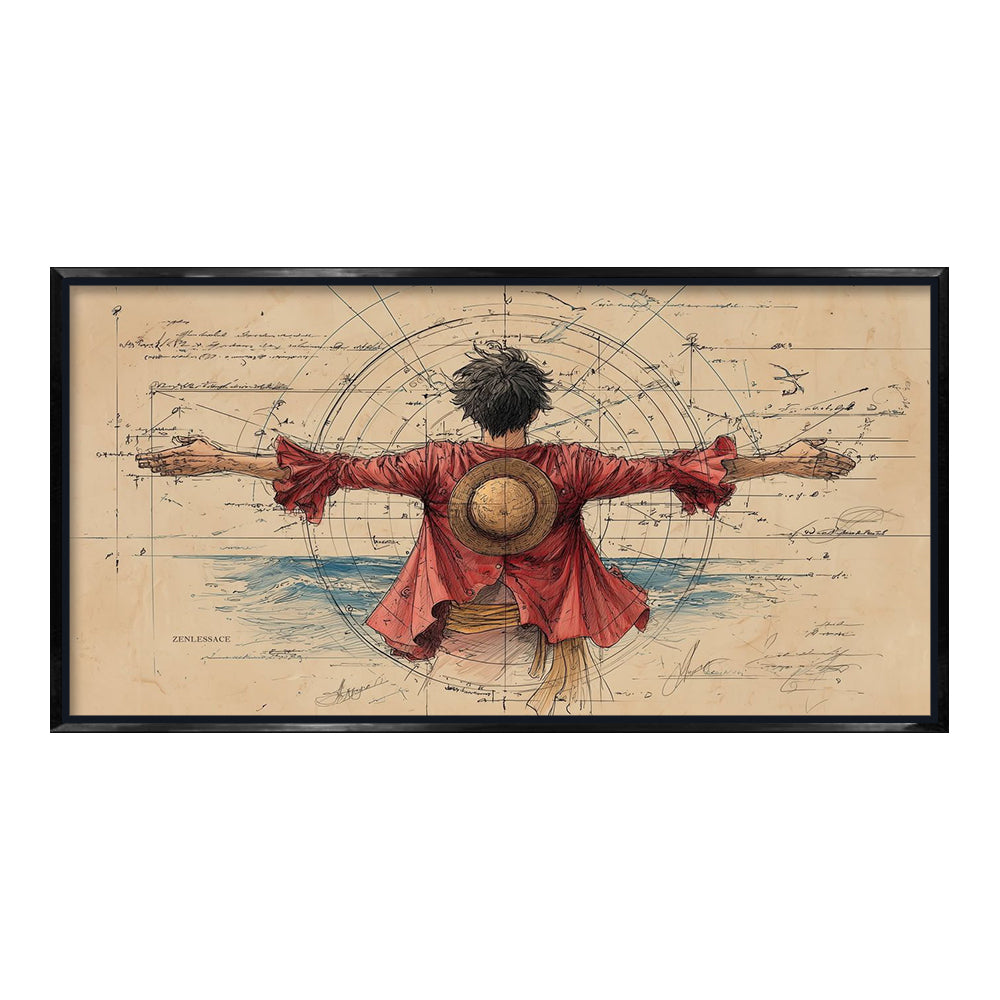 • Straw Hat Pirate Epic Pose Wall Art | Vintage Chart Nautical Anime Illustration| Pirate Figure on Compass Chart Background
