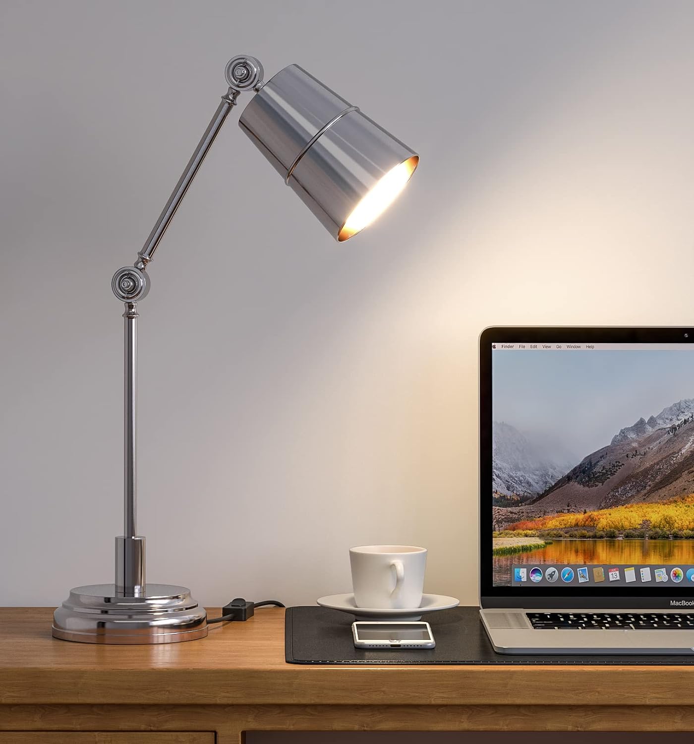 • Study Desk Office Reading Table Lamp Silver Nickel with Adjustable Moveable Head and Body