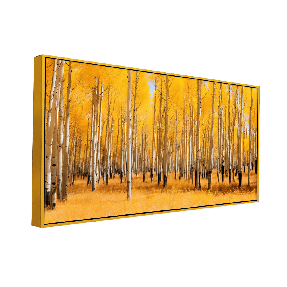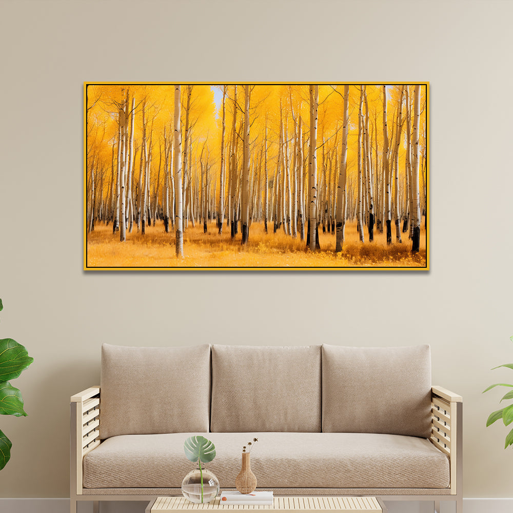Stunning Birch Trees Yellow Forest Panorama Modern Design Canvas Painting