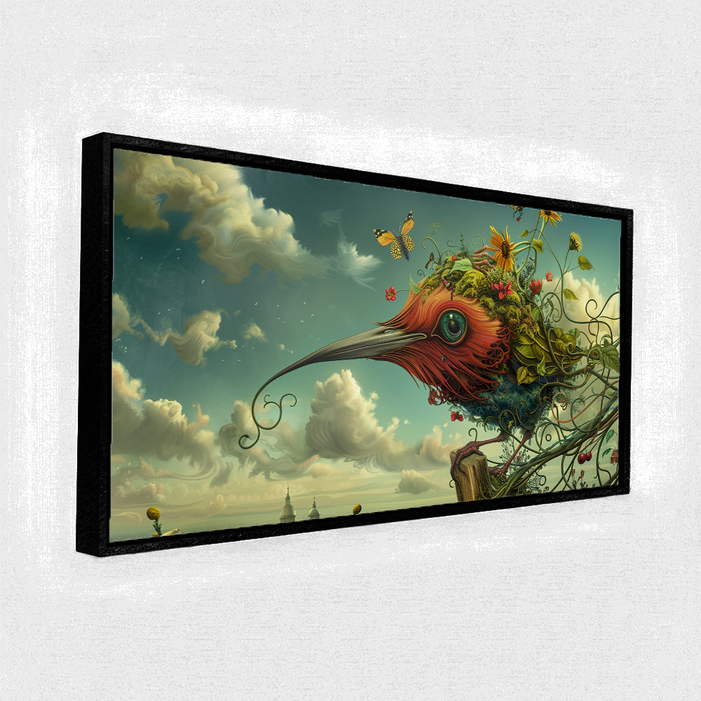 Surreal Botanical Bird Fantasy Art Canvas | Giant Organic Creature and Cloudy Sky Wall Print