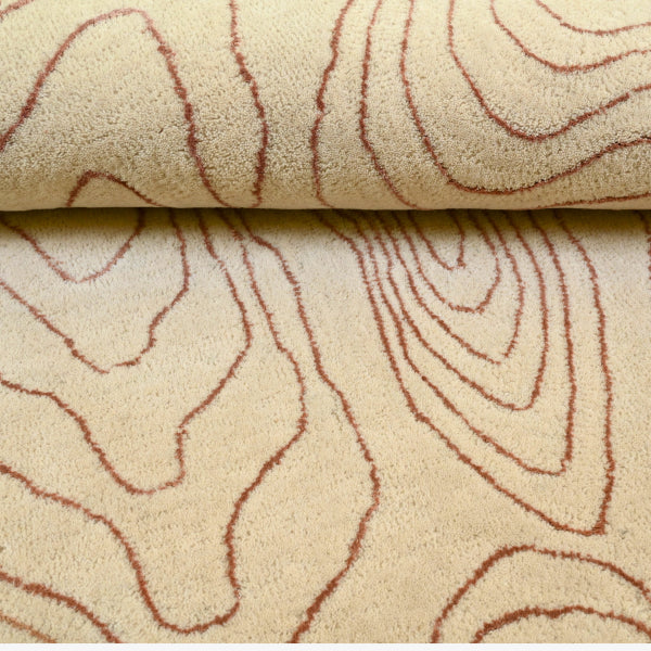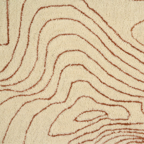 Evoking the graceful flow of natural terrain, Terrana draws inspiration from topographic lines and contour maps. Its soft sand tone and curved shape ground the space in warmth and calm. Hand-tufted in luxurious New Zealand wool, this statement rug blends organic texture with a soothing, minimalist aesthetic—ideal for mindful interiors and nature-inspired nooks.