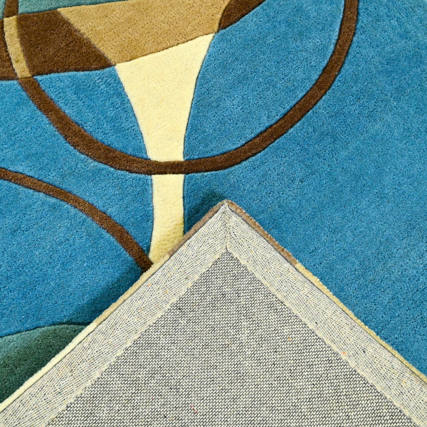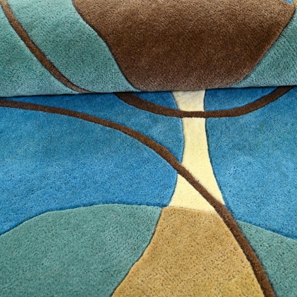 Tessara pulses with energy through sweeping curves and painterly overlays of teal, ochre, and cerulean. Hand-tufted in New Zealand wool, its bold abstract forms are softened by velvety texture and sculpted accents. Perfect for eclectic and creative interiors, this rug brings modern art to your floor in the most tactile form.