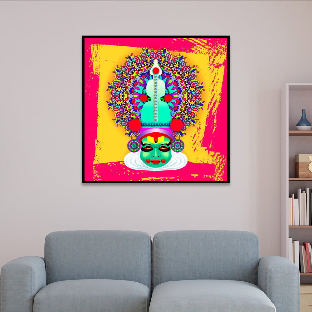 Traditional Kathakali Canvas Wall Painting with Floating Frame