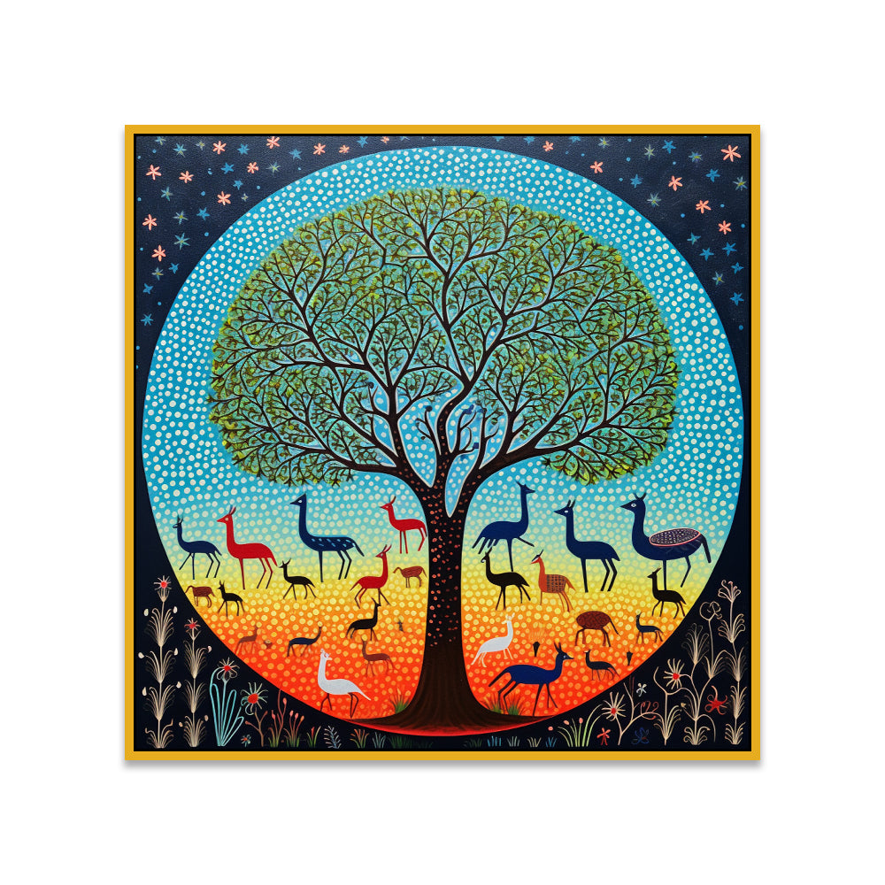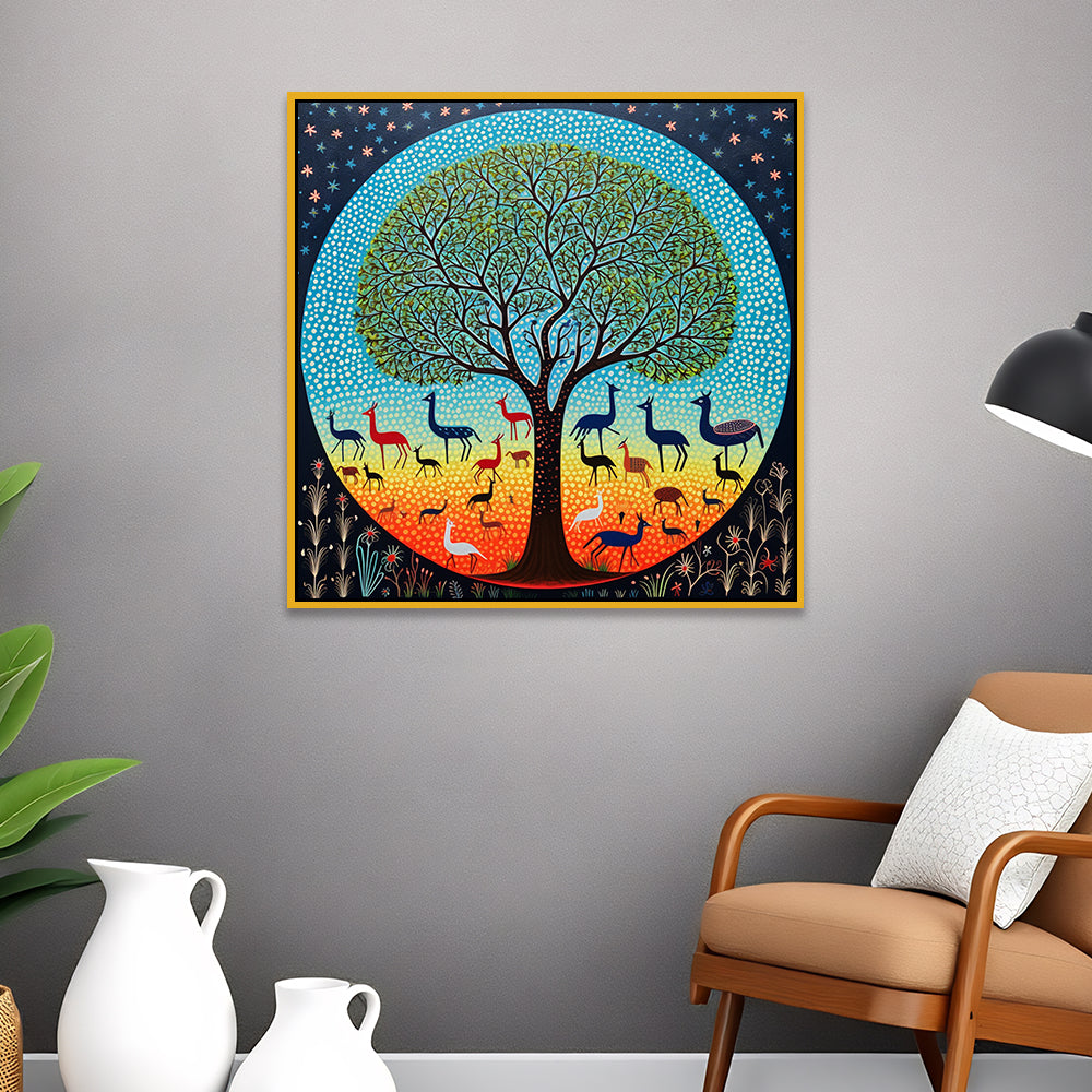 • Tribal Gond Art Tree of Life Canvas Wall Painting