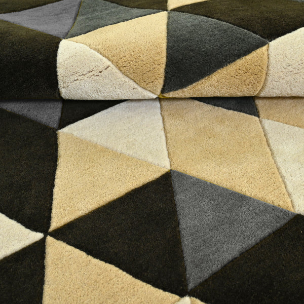 Velora brings a striking rhythm to the room with its bold interplay of triangles in charcoal, sand, cream, and slate. Hand-tufted in plush New Zealand wool, this rug blends graphic precision with warm, neutral tones—perfect for modern spaces seeking dimension and dynamism. A sophisticated standout that works equally well in living rooms or stylish home offices.