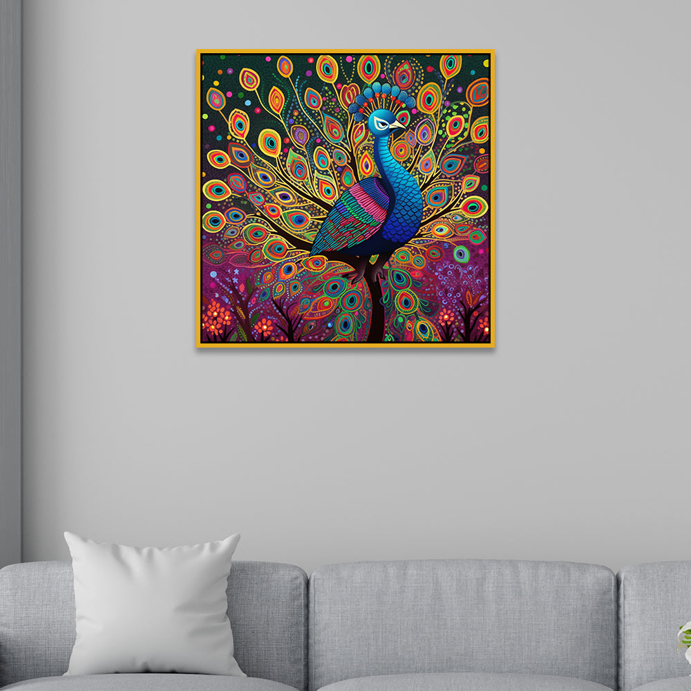 • Vibrant Multicolor Majestic Peacock Vastu Canvas Wall Painting