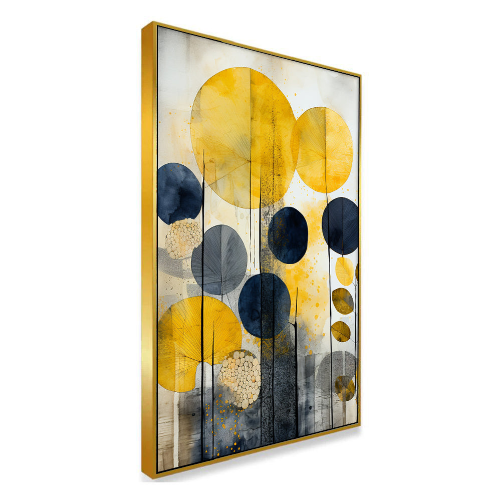 • Yellow and Black Flowers and Leaves Floating Frame Modern Canvas Wall Painting